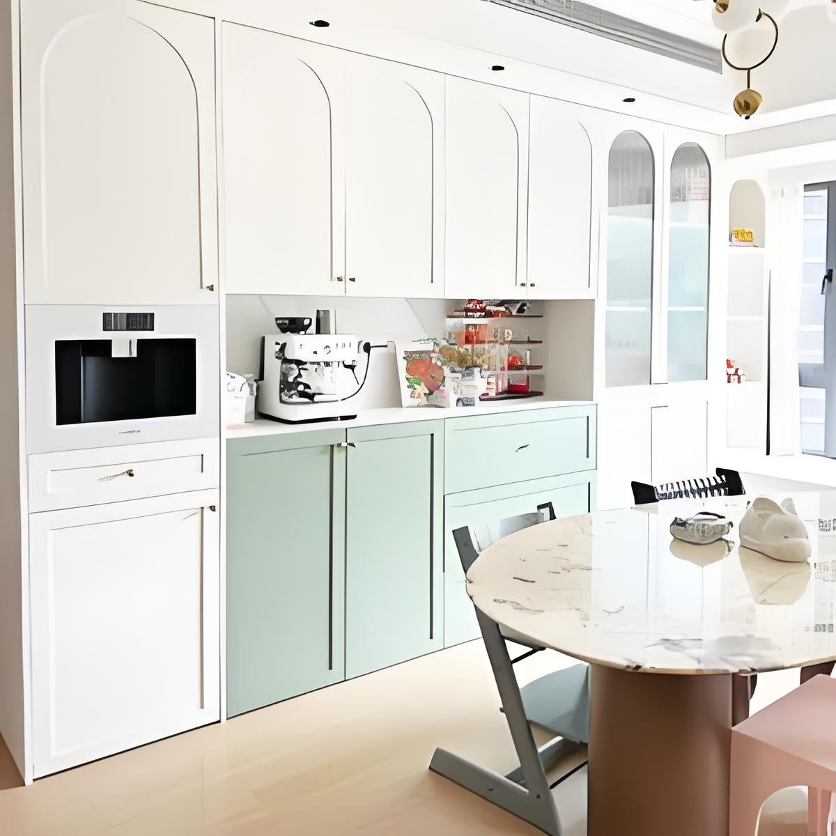 A well-designed apartment dining room storage wall helps organize tableware, appliances, and display items without making the dining area feel crowded. For furniture importers, developers, and wholesalers, this apartment dining room storage wall offers a practical combination of elegant styling, soft-close functionality, and export-friendly RTA structure. If you are sourcing modern apartment dining room storage wall products for residential or hospitality projects, this design provides strong visual appeal and efficient storage performance.