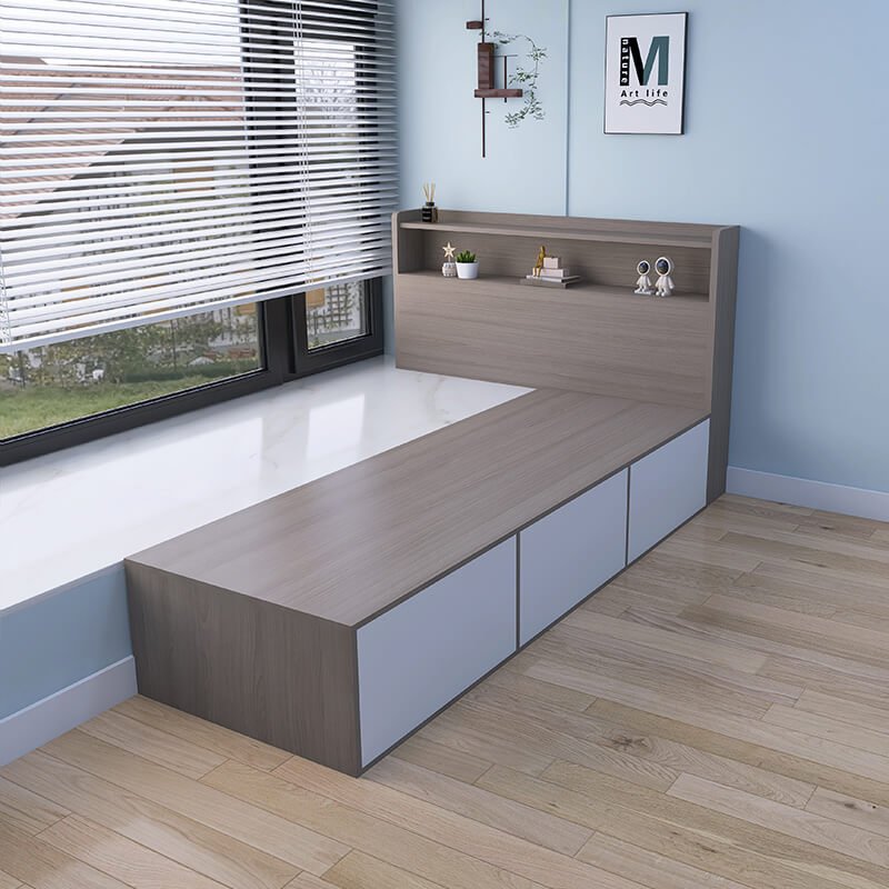 As a leading panel furniture manufacturer, we deliver high-quality, multi-functional beds for the modern market. This storage bed with headboard exemplifies smart design, offering bay window compatibility and flexible splicing options with storage cabinets. It’s the perfect export-ready product for clients seeking durable, space-optimizing solutions for compact urban homes.