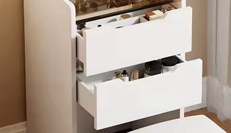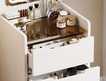 This model offers layered storage for makeup, skincare, accessories and personal items. The upper drawers support quick access, while the lower compartments help keep daily clutter hidden.