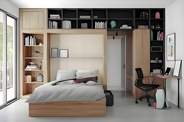 Perfect for small apartments, this furniture set maximizes your available space while providing essential storage and work areas.