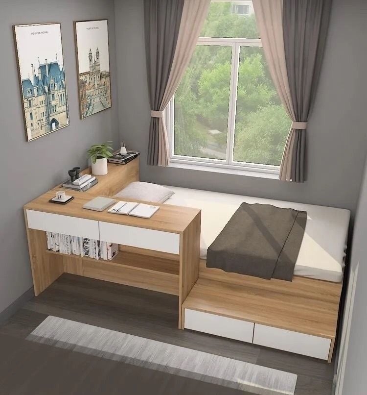 This panel bed with storage for bay window is a smart, space-saving furniture solution designed for modern apartments, student housing and hotel rooms. By combining a solid panel bed structure with integrated drawers and hidden storage, it turns an unused bay window platform into a comfortable sleeping and storage area.