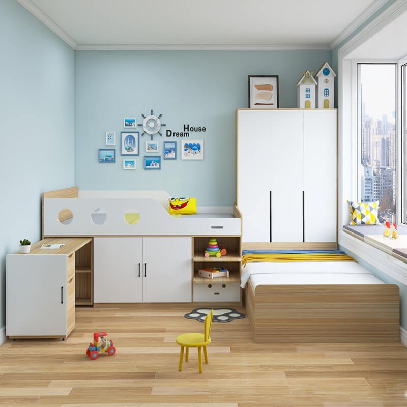 Parents, imagine reclaiming your child’s floor space for playtime and activities. This loft bed is designed to do just that. By moving the bed upward, we create a dedicated and cozy area underneath for a desk and wardrobe. This not only saves space but also helps children focus on homework in their own special nook. The wardrobe promotes organization skills. It’s a practical solution that kids will love for its fort-like feel, and parents will appreciate for its functionality.This innovative Youth Loft Bed is engineered to solve the challenge of limited space. By vertically utilizing room space, it creates a dedicated area for sleeping, studying, and storage all in one footprint. The built-in desk provides an excellent study station, while the integrated wardrobe keeps clothes organized. Made from high-quality, durable panel materials, this bed is a smart investment for any child’s room. We specialize in customizing this design to meet your specific market needs.This innovative Youth Loft Bed is engineered to solve the challenge of limited space. By vertically utilizing room space, it creates a dedicated area for sleeping, studying, and storage all in one footprint. The built-in desk provides an excellent study station, while the integrated wardrobe keeps clothes organized. Made from high-quality, durable panel materials, this bed is a smart investment for any child’s room. We specialize in customizing this design to meet your specific market needs.This innovative Youth Loft Bed is engineered to solve the challenge of limited space. By vertically utilizing room space, it creates a dedicated area for sleeping, studying, and storage all in one footprint. The built-in desk provides an excellent study station, while the integrated wardrobe keeps clothes organized. Made from high-quality, durable panel materials, this bed is a smart investment for any child’s room. We specialize in customizing this design to meet your specific market needs.This innovative Youth Loft Bed is engineered to solve the challenge of limited space. By vertically utilizing room space, it creates a dedicated area for sleeping, studying, and storage all in one footprint. The built-in desk provides an excellent study station, while the integrated wardrobe keeps clothes organized. Made from high-quality, durable panel materials, this bed is a smart investment for any child’s room. We specialize in customizing this design to meet your specific market needs.Parents, imagine reclaiming your child’s floor space for playtime and activities. This loft bed is designed to do just that. By moving the bed upward, we create a dedicated and cozy area underneath for a desk and wardrobe. This not only saves space but also helps children focus on homework in their own special nook. The wardrobe promotes organization skills. It’s a practical solution that kids will love for its fort-like feel, and parents will appreciate for its functionality.
