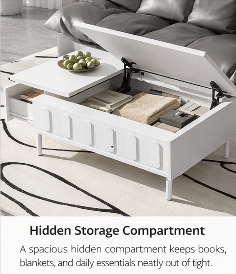 | Product Name | Nordic White Lift-Top Coffee Table with Dual Side Drawers |