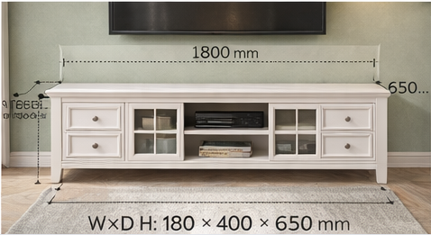 Elegant white TV stand with glass doors, soft-close drawers, and export-ready RTA construction. Ideal for wholesalers, apartment furnishing projects, retailers, and OEM/ODM buyers.