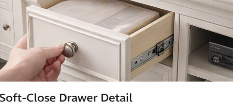 Soft-close hardware enhances user experience and perceived quality.